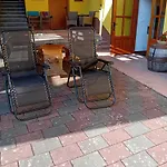 En terrasse og en spiseplads samt separat toilet og en bruser findes på værelserne.